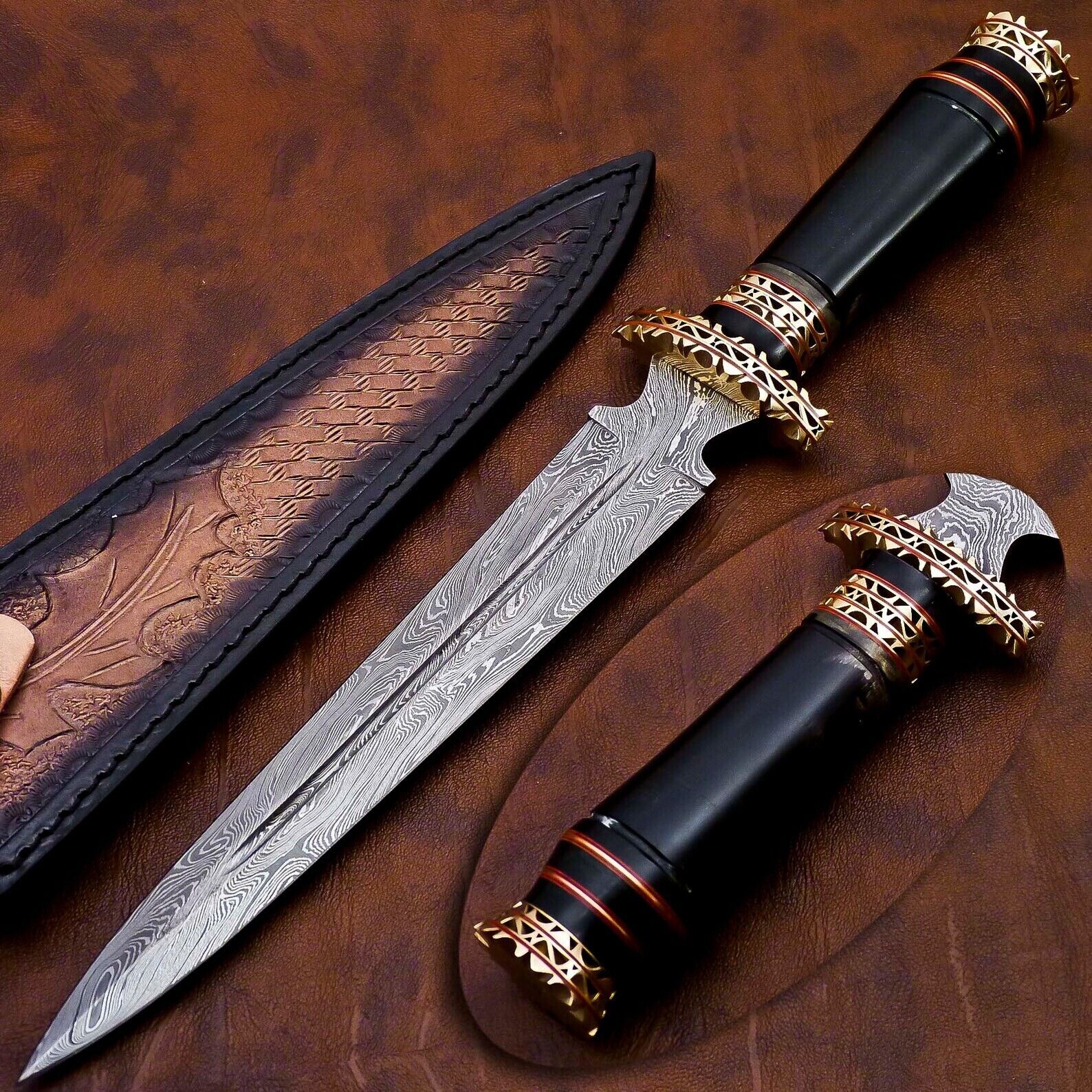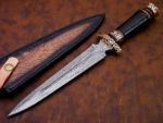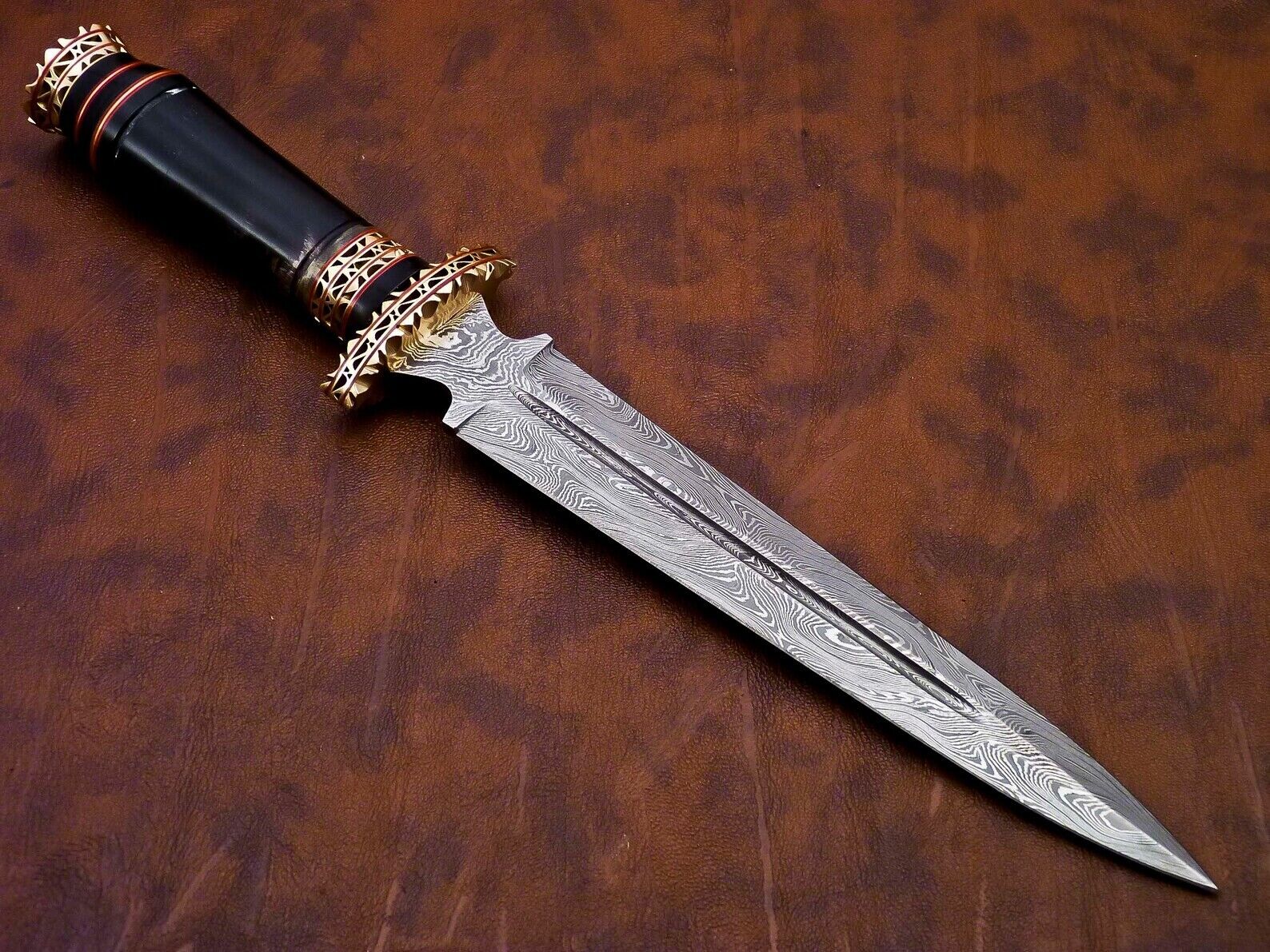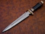 Handmade Damascus Steel Dagger Knife With Black horn and Brass Spacer Knife