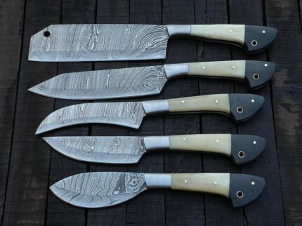 Black Friday sale, Custom Made Damascus Blade Kitchen/Chef Knife Set 5 pieces, Unique High Grade Hand Forged Kitchen Knives Set 342,00 € Original price was: 342,00 €.163,00 €Current price is: 163,00 €.