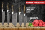 Damascus Blade Kitchen/Chef Knife Set 5 pieces, Unique High Grade Hand Forged Kitchen Knives Set