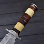 Custom Handmade Damascus Steel Hunting Bowie Knife with Leather Sheath