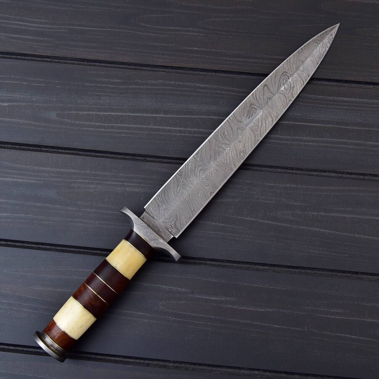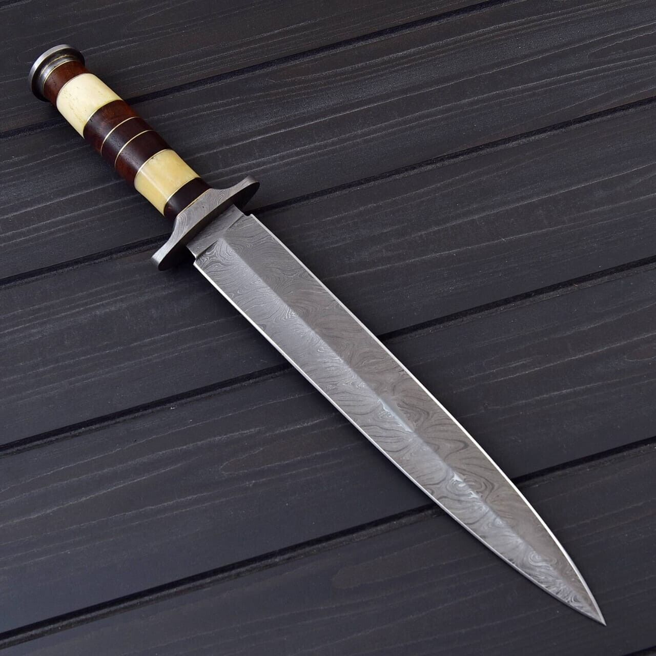 Custom Handmade Damascus Steel Hunting Dagger Knife with Leather Sheath