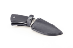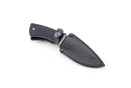 Ebony handle with one finger groove. Titanium hand engraved guard with decorative motifs.