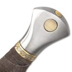 - The cross guard and pommel are cast metal and the grip is wrapped in genuine leather